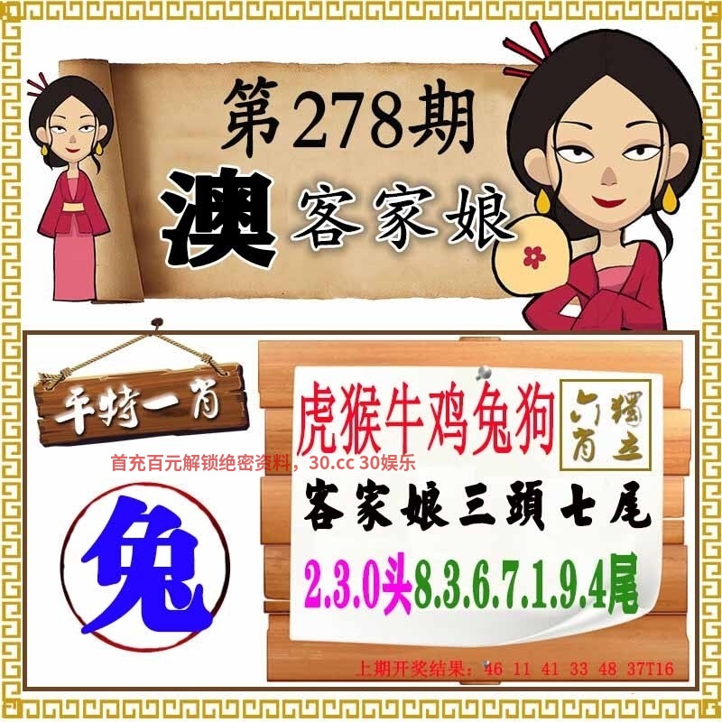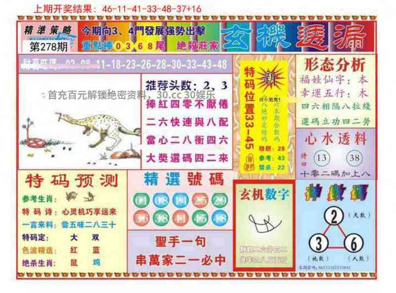 278期:✰虎龙蛇马狗猴羊牛鸡✰开:虎28准 |